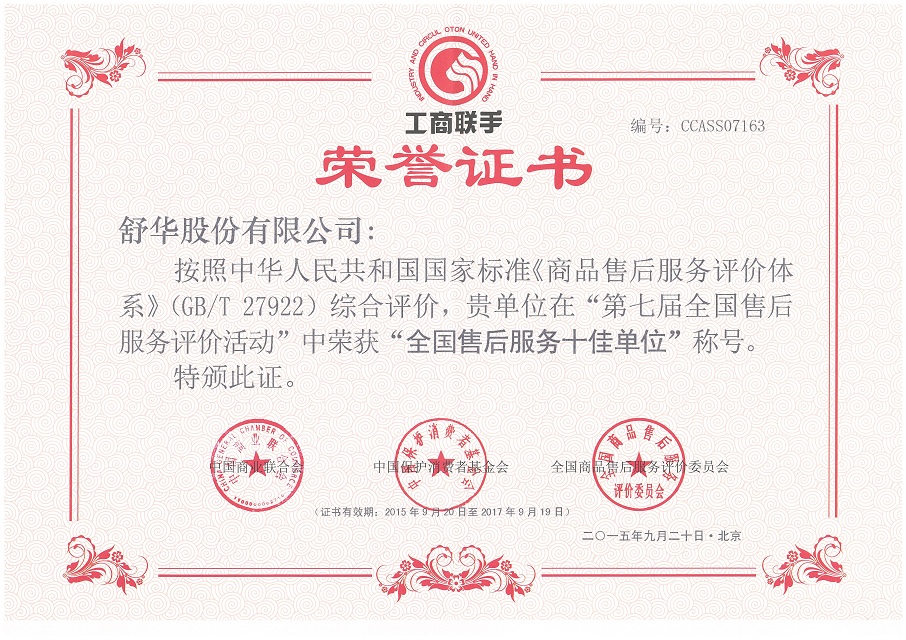 From 2017 to 2018, Shuhua was named the "Top 10 Enterprise of Body Building Equipment Industry in China Light Industries " for the second consecutive year. In 20